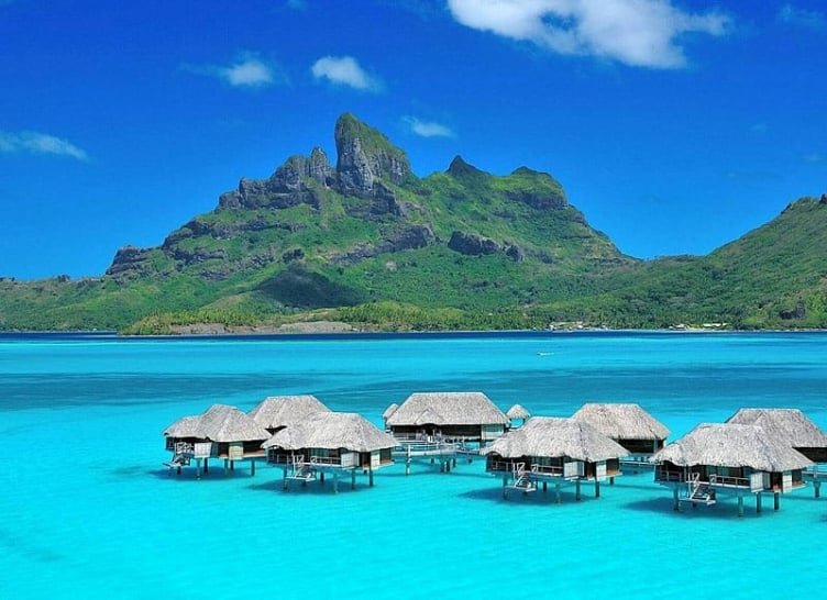 French Polynesia (Bora Bora), a small South Pacific island in French Polynesia, is renowned for its breathtaking beauty, overwater bungalows, pristine turquoise lagoon, luxurious accommodations, and the sense of exclusivity it provides.
